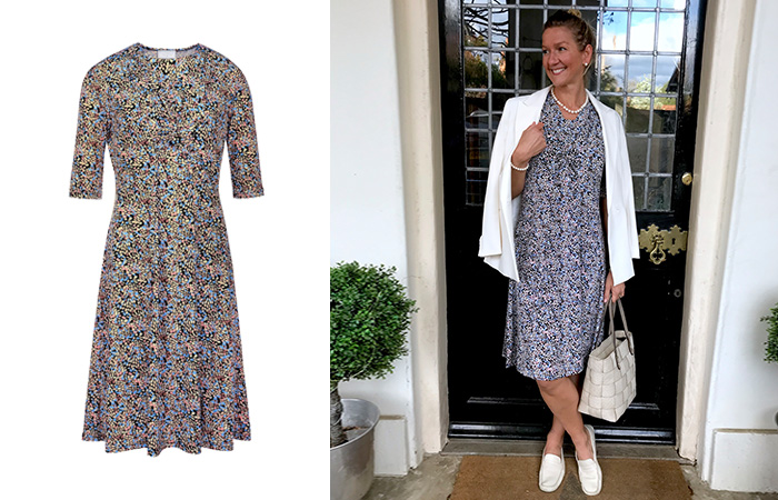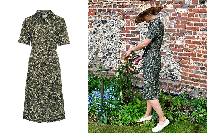 I was spoilt for choice with the summer range but I’ve pulled together a few of my favourites to share with you as well as show you how I would style them here at home. I believe clothes have to work for you; they should fit with your lifestyle while feeling effortless and comfortable. If you wear something new and it doesn’t feel right, it probably isn’t for you. However, the pieces from Cotswold Collections felt like I’d already had them in my wardrobe for years as they’re so beautifully made, comfortable and stylish. My first choice had to be these gorgeous navy trousers. I have styled them here with a blazer and simple heels. They are so versatile; I would be as happy in a pair of heels and a silk camisole with them for an evening out, as I would be wearing them with some flat shoes and a navy polo-neck top in the garden. The high waist makes me feel held in but with a lovely loose, long leg. They are definitely a wardrobe staple for me! I was given this young rose bush for my birthday last year and my lovely mother (who lives next door) has been teaching me how to prune it back. There couldn’t be a more perfect outfit for the task than this stunning palm print belted dress! It’s smart and sophisticated while not being too dressy or fussy. I love its khaki green print and it’s a lovely nod to the timeless safari style we see every year on the fashion pages. It would look as stunning paired with a blazer for a formal occasion too.