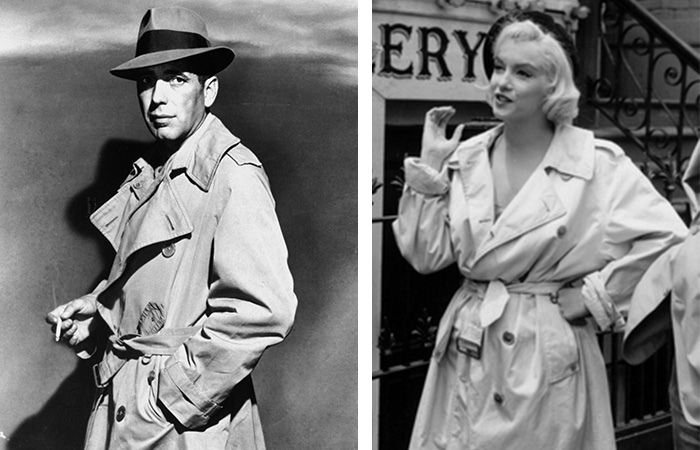The silver screen made the trench coat an even more covetable item and embodied it as a timeless fashion staple through being worn in some of the most iconic scenes in history by film and fashion royalty such as Humphrey Bogart in Casablanca, Audrey Hepburn in Breakfast at Tiffany’s and Marilyn Monroe in Let’s Make Love.