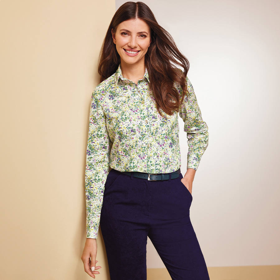 At Cotswold Collections, we celebrate the classics. Our commitment transcends fleeting trends, crafting pieces that are investments for a lifetime of effortless elegance. This floral blouse is a testament to that promise and embodies timeless style with its soft palette of mint and gentle pops of purple.