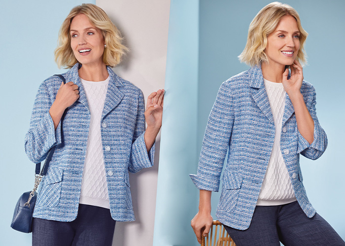 Nothing says timeless more than tweed, and our blue Tweed Jacket is set to leave your wardrobe feeling refreshed yet ready for any cooler temperatures. Featuring an Italian Boucle Tweed, this fully lined piece offers exceptional quality and versatility for styling throughout not just this season, but every season.