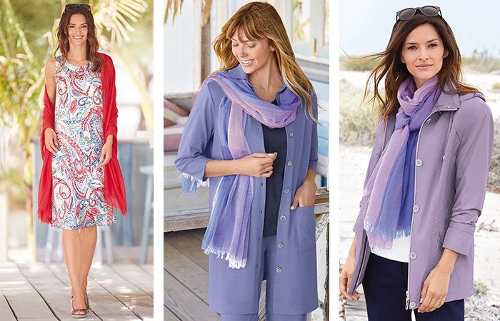 “A lot of the scarves I select in Spring/Summer are very multi functional for the season. They can be worn as a cover up, elegantly draped around the shoulders as well as a conventional scarf, take a look at our stunning Italian woven scarf to see how a slight alternation of styling can make a huge difference to the whole ensemble!”