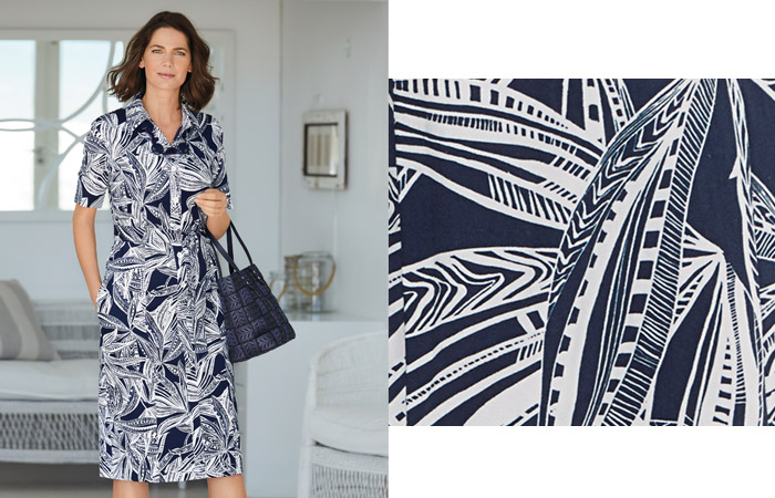 A firm customer favourite, this best-selling style is back with a stunning new design of block-print leaves and an improved fit. Discover why this dress is so popular by ordering it here >