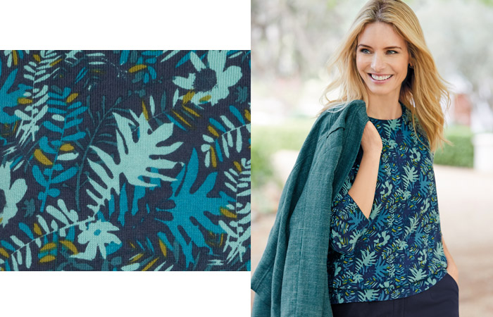 This delightful leaf print jersey top is an elegant solution to introducing the print of the season into your outfit. In a pure cotton fabric, this easy to wear jersey top offers a sophisticated option for the coming months.